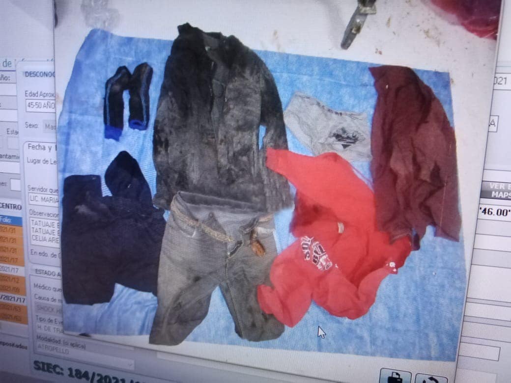El hombre vestía pantalón de mezclilla azul marino, chamarra negra, playera roja con una edad aproximada entre 45 y 50 años de edad.