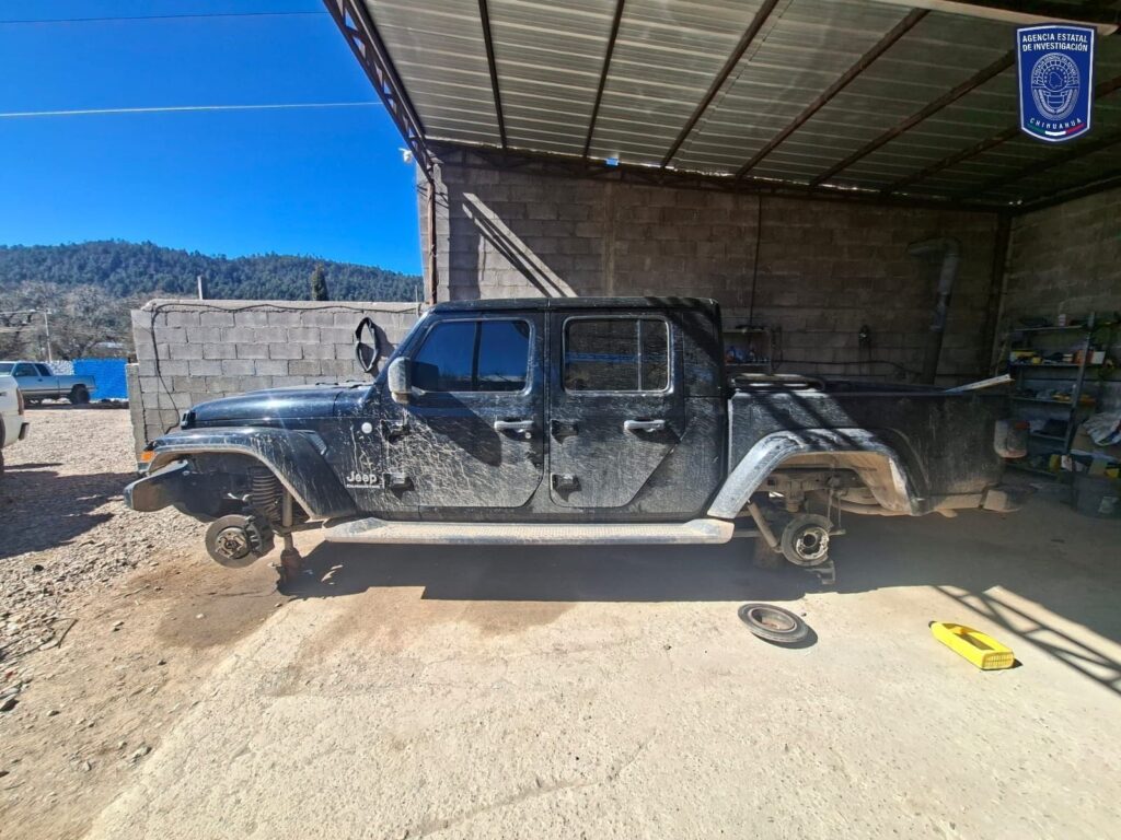 Mientras que en la comunidad de Huajumar, municipio de Ocampo, en el exterior de un taller mecánico localizaron un vehículo de la marca Jeep, línea Gladiator, modelo 2021, sin placas de circulación, color negro, mismo que cuenta con reporte de robo del 08 de noviembre del 2025, en el municipio de Guerrero.