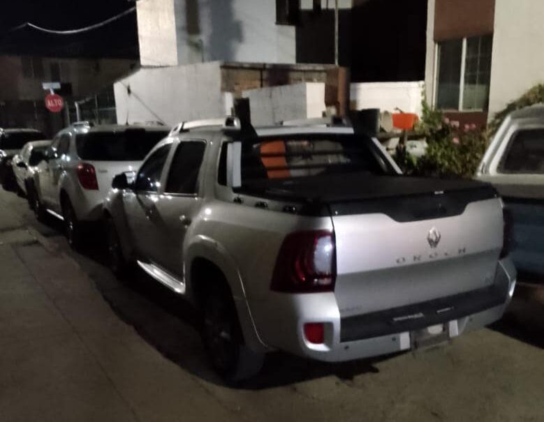 La primera matrícula es la DX-2039-A, correspondiente a la parte trasera de una pick up de la marca Renault, línea Oroch, modelo 2019, color gris, número de serie KJ460581.