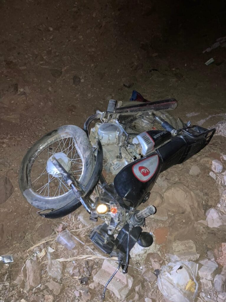 Se vió involucrada una motocicleta, Kurazai, modelo 2018, color negro, conducido por una persona del sexo masculino de 22 años de edad, quien resultó lesionado de consideración al igual que su acompañante del sexo masculino de aproximadamente 25 años de edad, por lo que ambos fueron rescatados por personal de Bomberos, Protección Civil y Cruz Roja y posteriormente trasladados a un hospital de la ciudad para su atención médica.