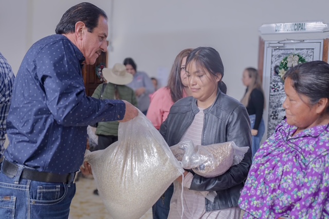 Durante la jornada se distribuyeron 4 toneladas de maíz y frijol, como parte de las acciones encaminadas a fortalecer la seguridad alimentaria y mejorar la calidad de vida de la población.