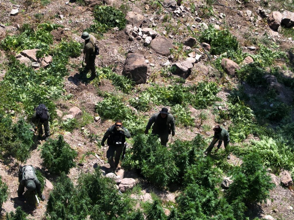 Durante 3 días y 2 noches, el personal destruyó las plantas distribuidas en 11 terrenos, donde se localizaron también campamentos, parapetos y áreas de secado de las plantas.