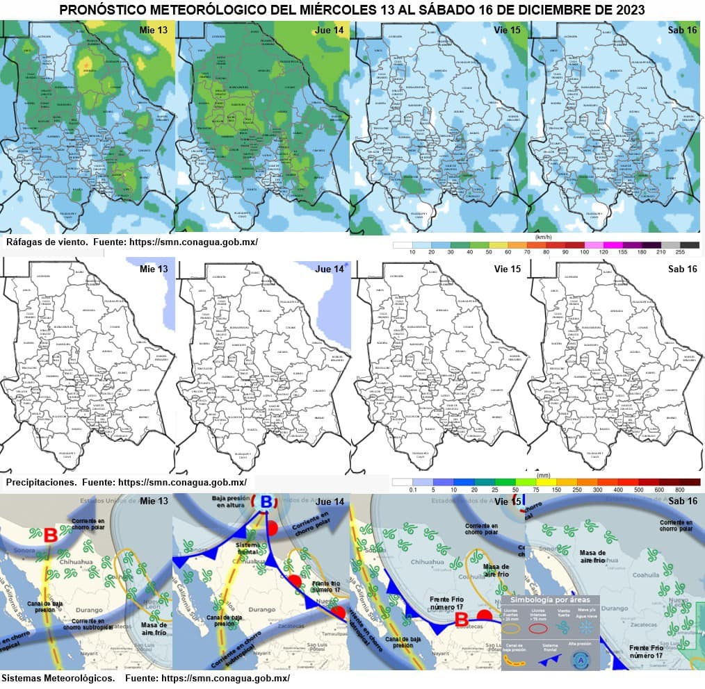 Las Coordinación Estatal de Protección Civil (CEPC) informa que para este miércoles 13, la entrada del sistema frontal número 17 a la frontera noroeste y norte, mantendrá las temperaturas muy frías con heladas en la zona serrana, mientras que en el resto del estado el ambiente será frío por la mañana y de templado a cálido por la tarde, con cielo de mayormente despejado a nublado.