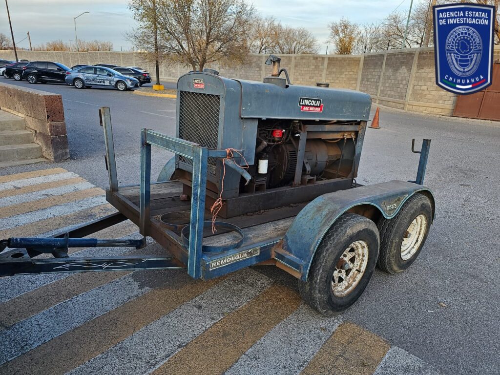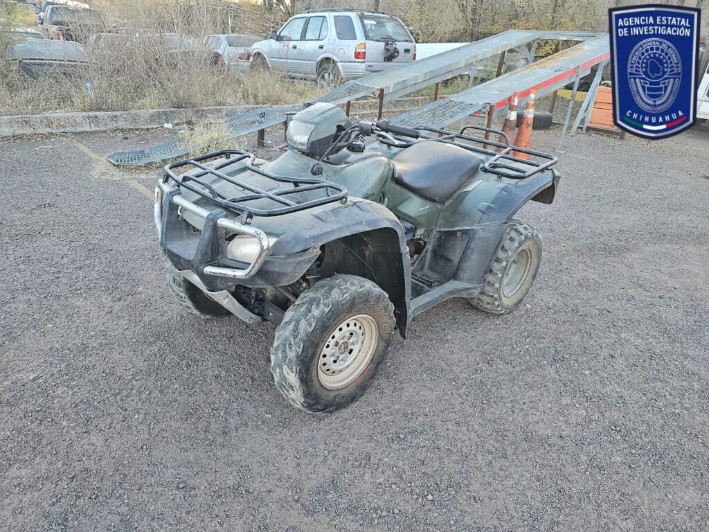 Elementos de la Agencia Estatal de Investigación, adscritos a la Fiscalía de Distrito Zona Occidente, recuperaron dos cuatrimotos y una maquinaria generadora de electricidad, que contaban con reporte de robo interpuesto el 5 de septiembre de 2023, en el municipio de Bachíniva.