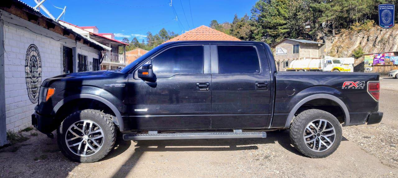 Elementos de la Agencia Estatal de Investigación, adscritos a la Fiscalía de Distrito Zona Occidente, localizaron un vehículo abandonado de la marca Ford, línea F-150, en una brecha cerca del lugar conocido como Villa Alpina, municipio de Ocampo, que resultó con reporte de robo.