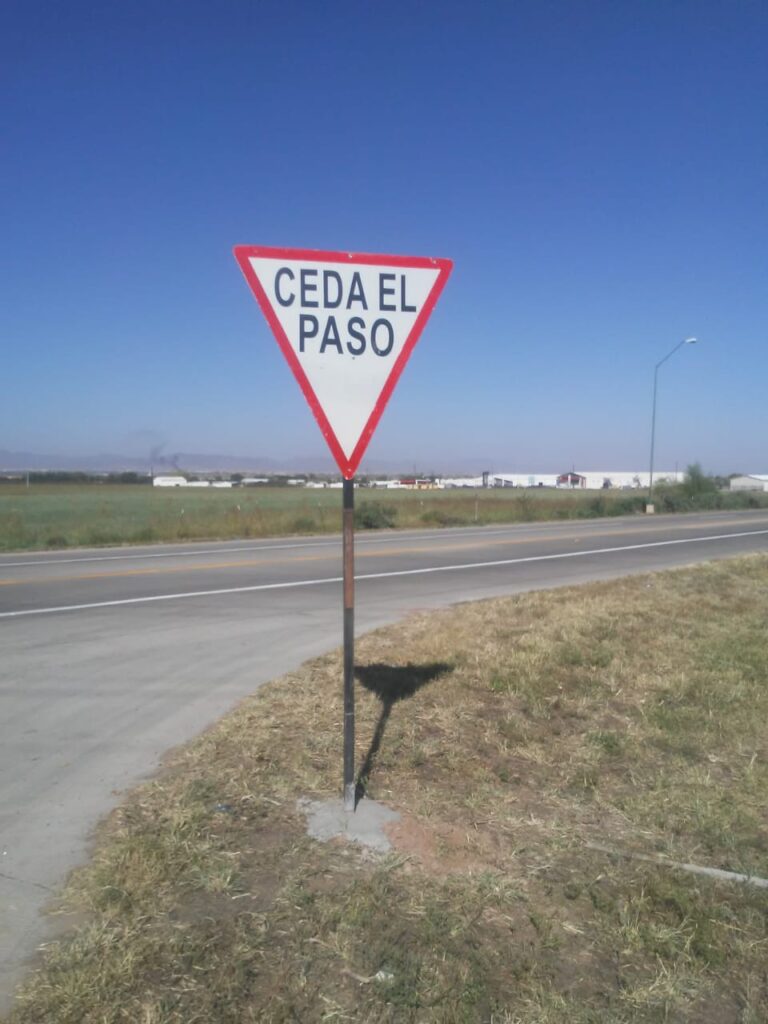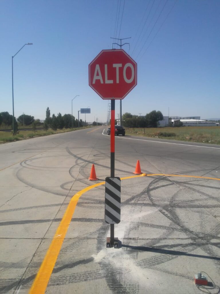 De igual manera se instalaron flechas de circulación en cada carril, 3 estructuras de señalética (uno referente a Alto y otros dos de Ceda el Paso), así mismo, el área de Ingeniería Vial pintó en la carpeta de concreto hidráulico leyendas de Alto, instaló 16 flechas, 3 líneas de frenado y colocó aproximadamente 35 boyas para definir los carriles de circulación en la intersección de la vialidad Juárez con la calle que enlaza al Libramiento Gómez Morín.